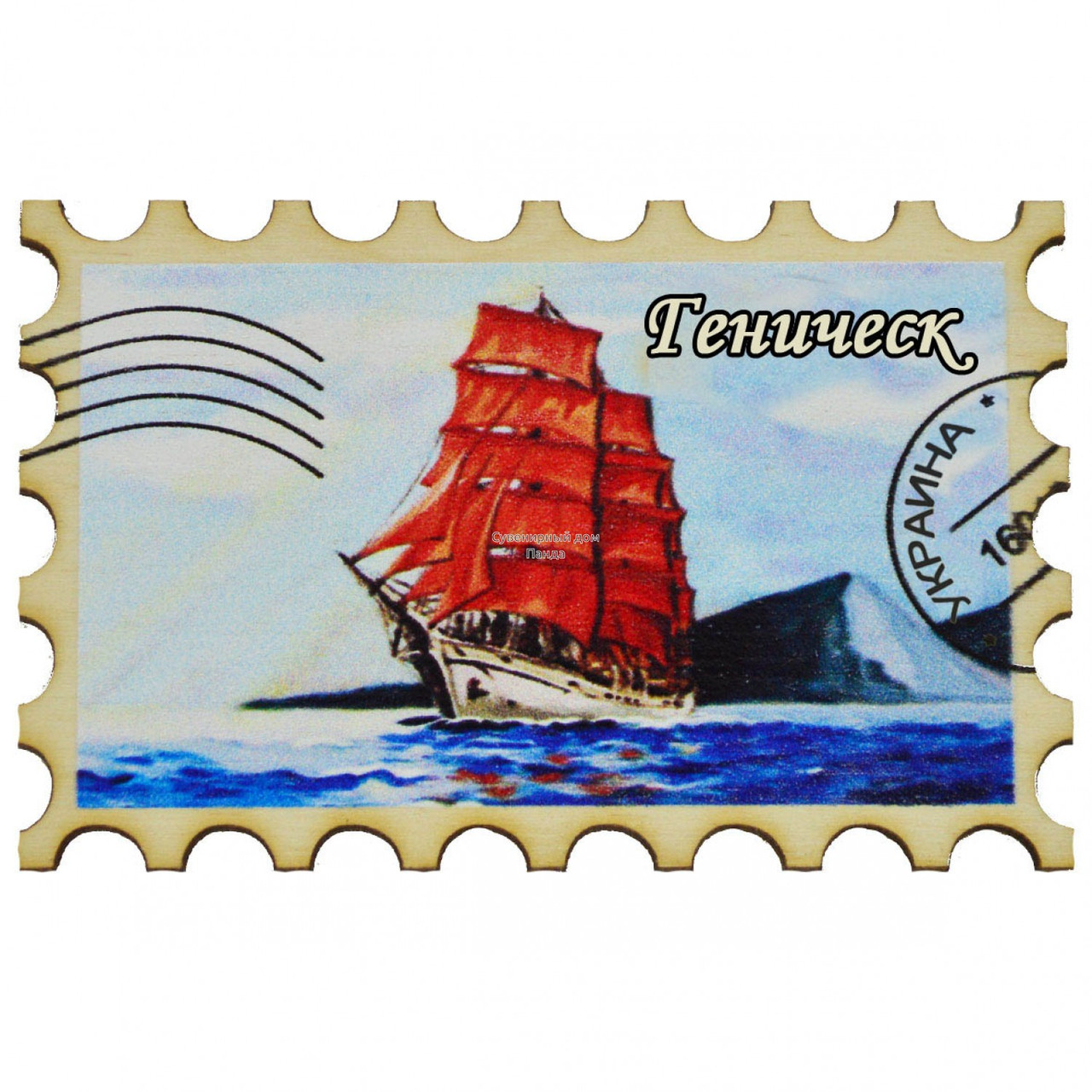 Марка No6 "Корабль з яскраво-червоними вітрилами" — магніт Геніческ