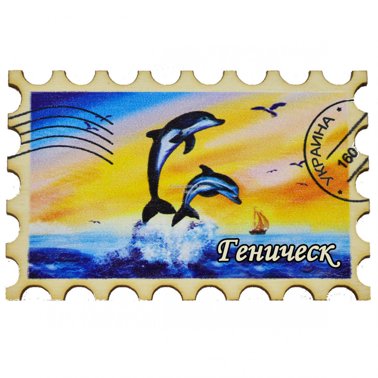 Марка No5 "Дельфіни над водою" — магніт Геніческ