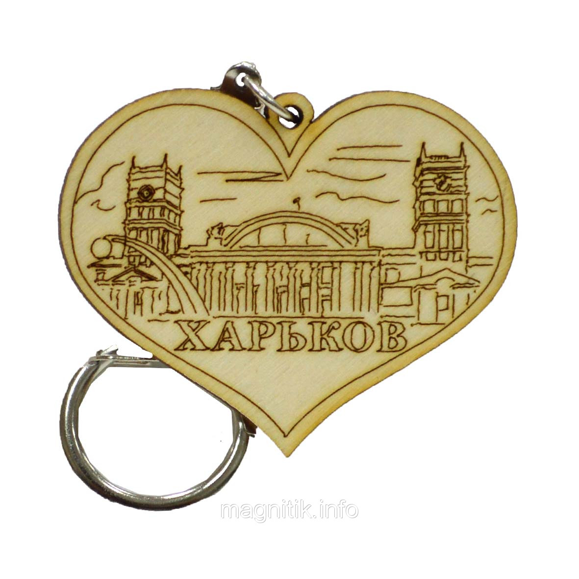 Брелок дерев'яний у формі серця "Харків: d вокзал". Міцний карабін, зображення випалене. Низькі ціни на сувеніри від виробника, контроль виробництва на кожному етапі.